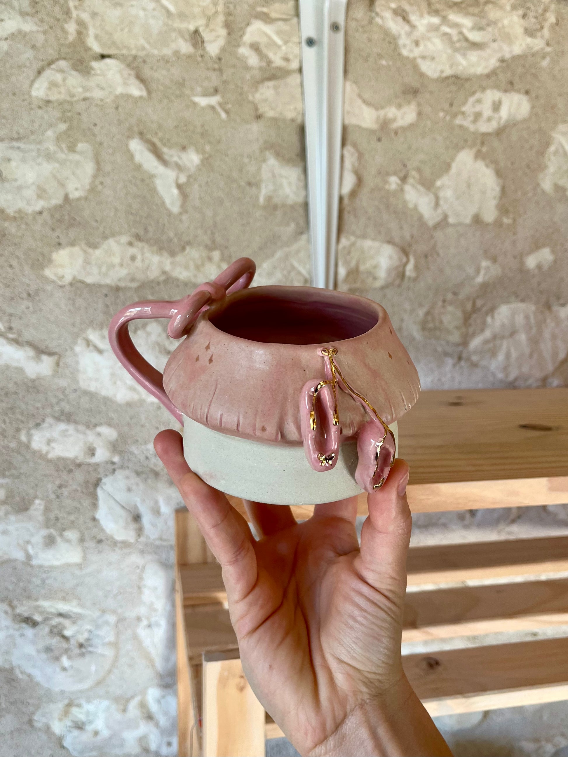Pièce Claytober 2025 réalisé au tour de potier puis modelé, engobé et émaillé à la main.
