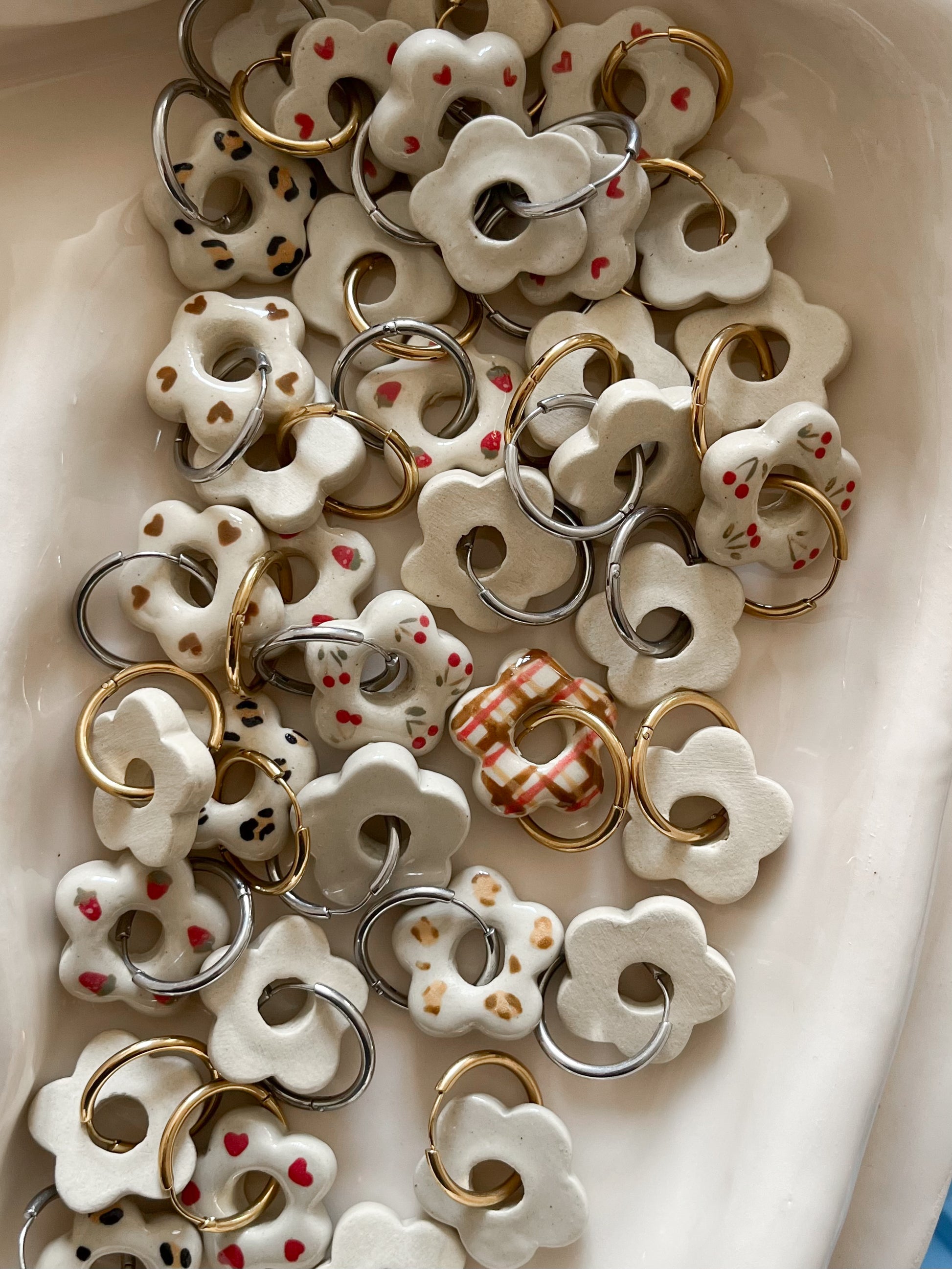 Boucles d’oreilles en céramique - fleur à motif