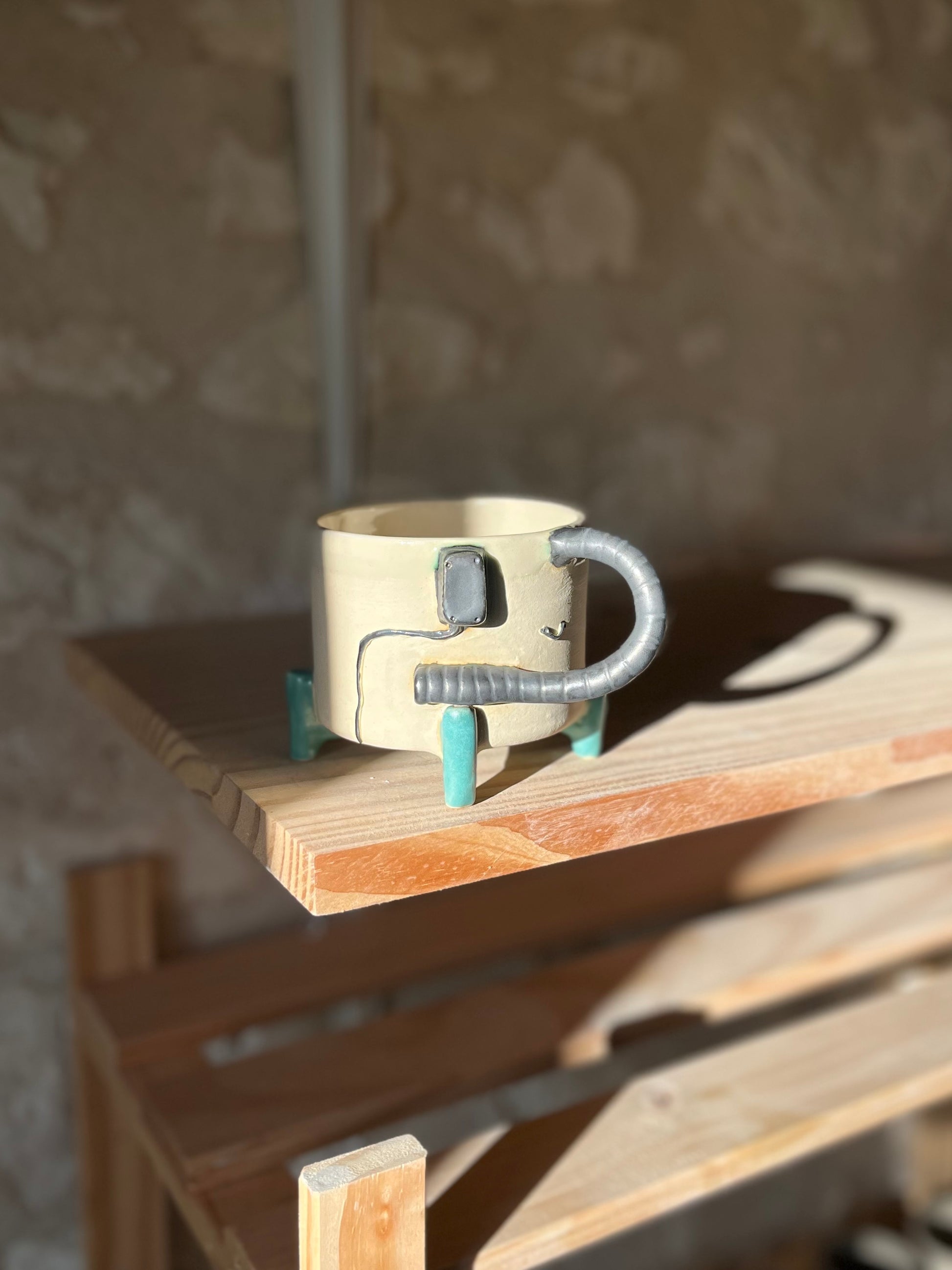 Pièce Claytober 2025 réalisé au tour de potier puis modelé, engobé et émaillé à la main.