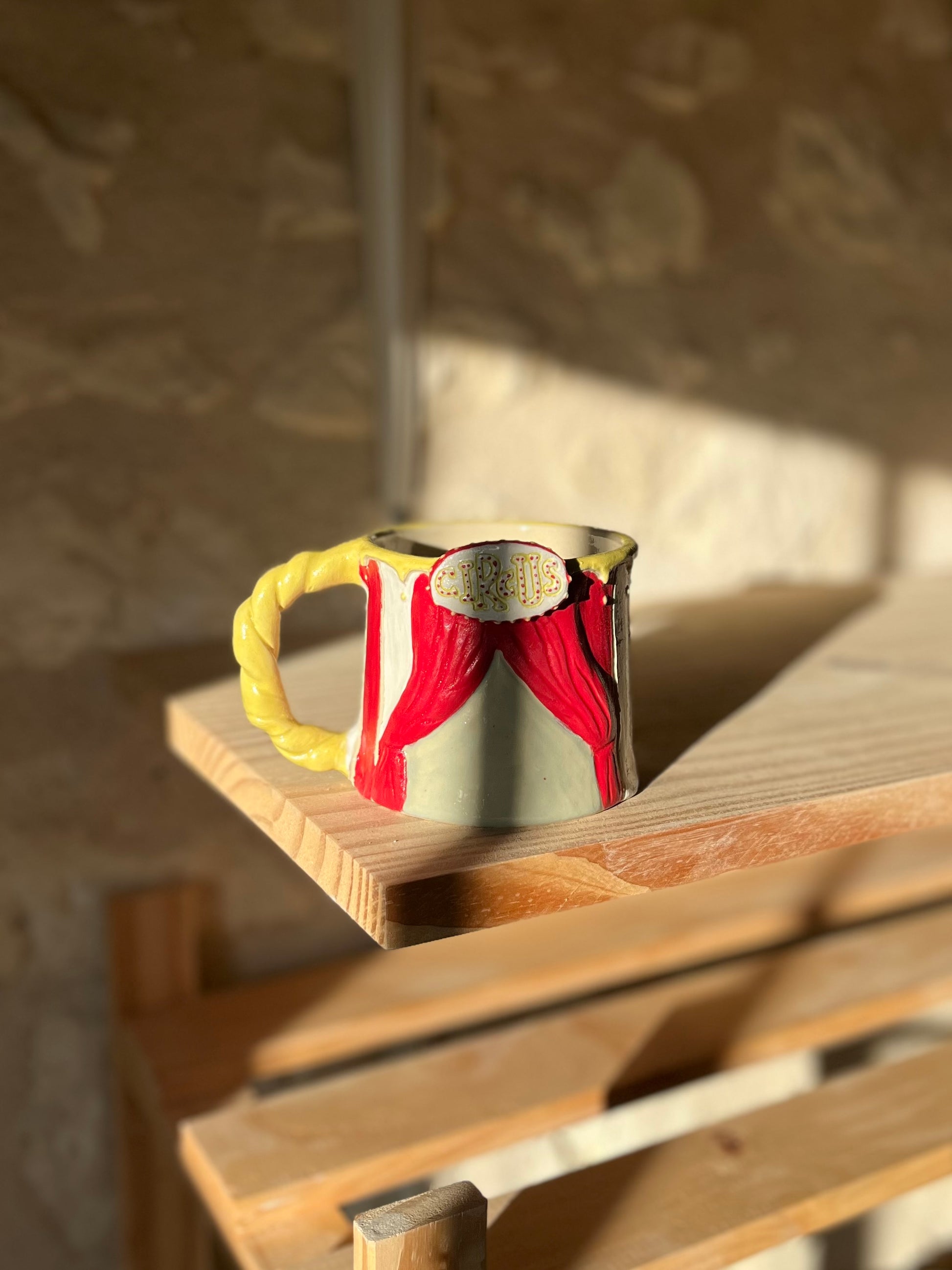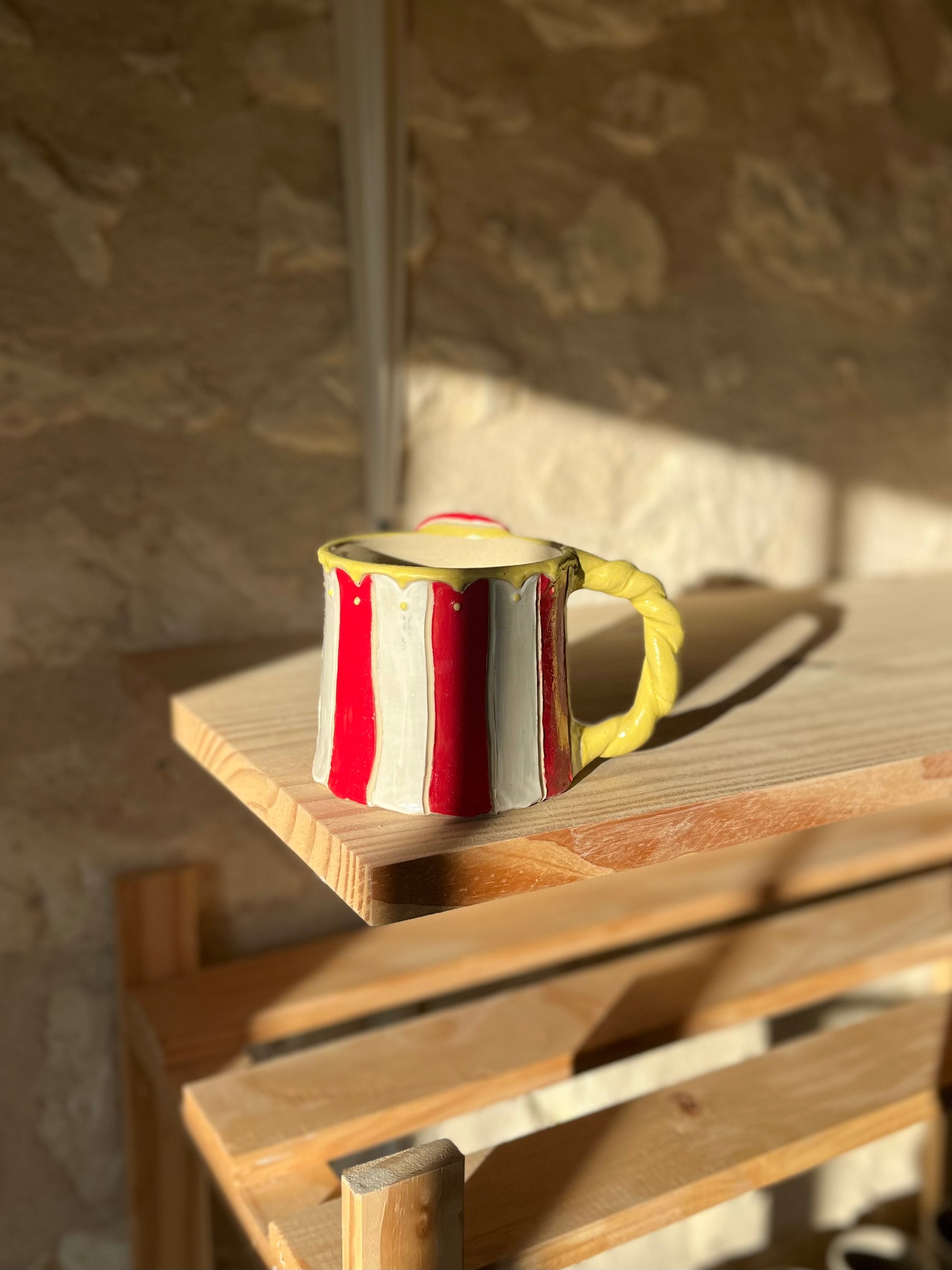 Pièce Claytober 2025 réalisé au tour de potier puis modelé, engobé et émaillé à la main.