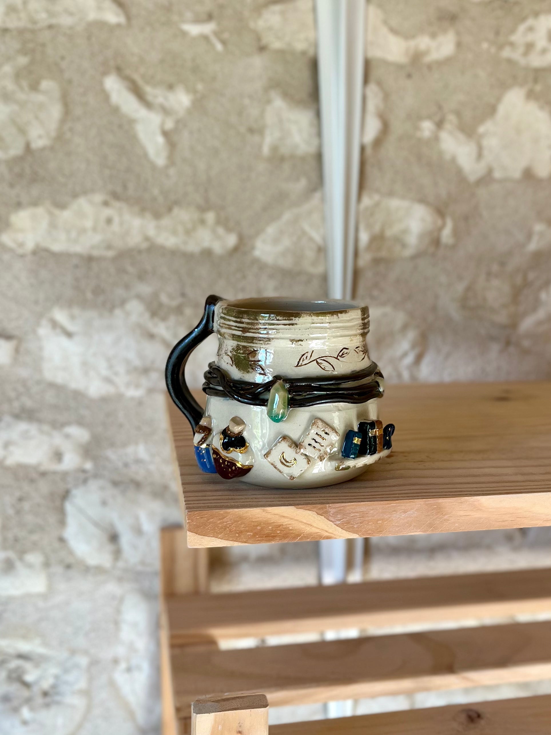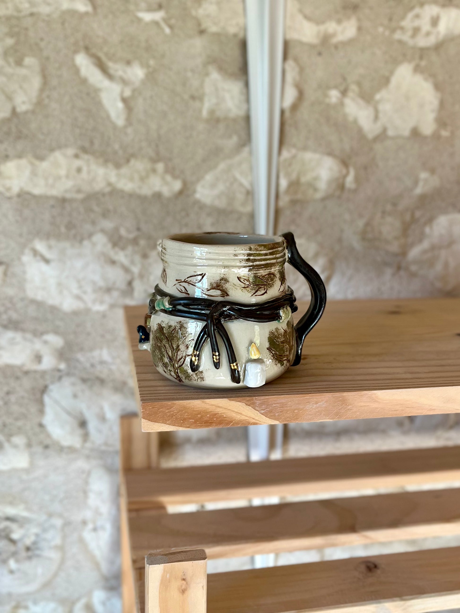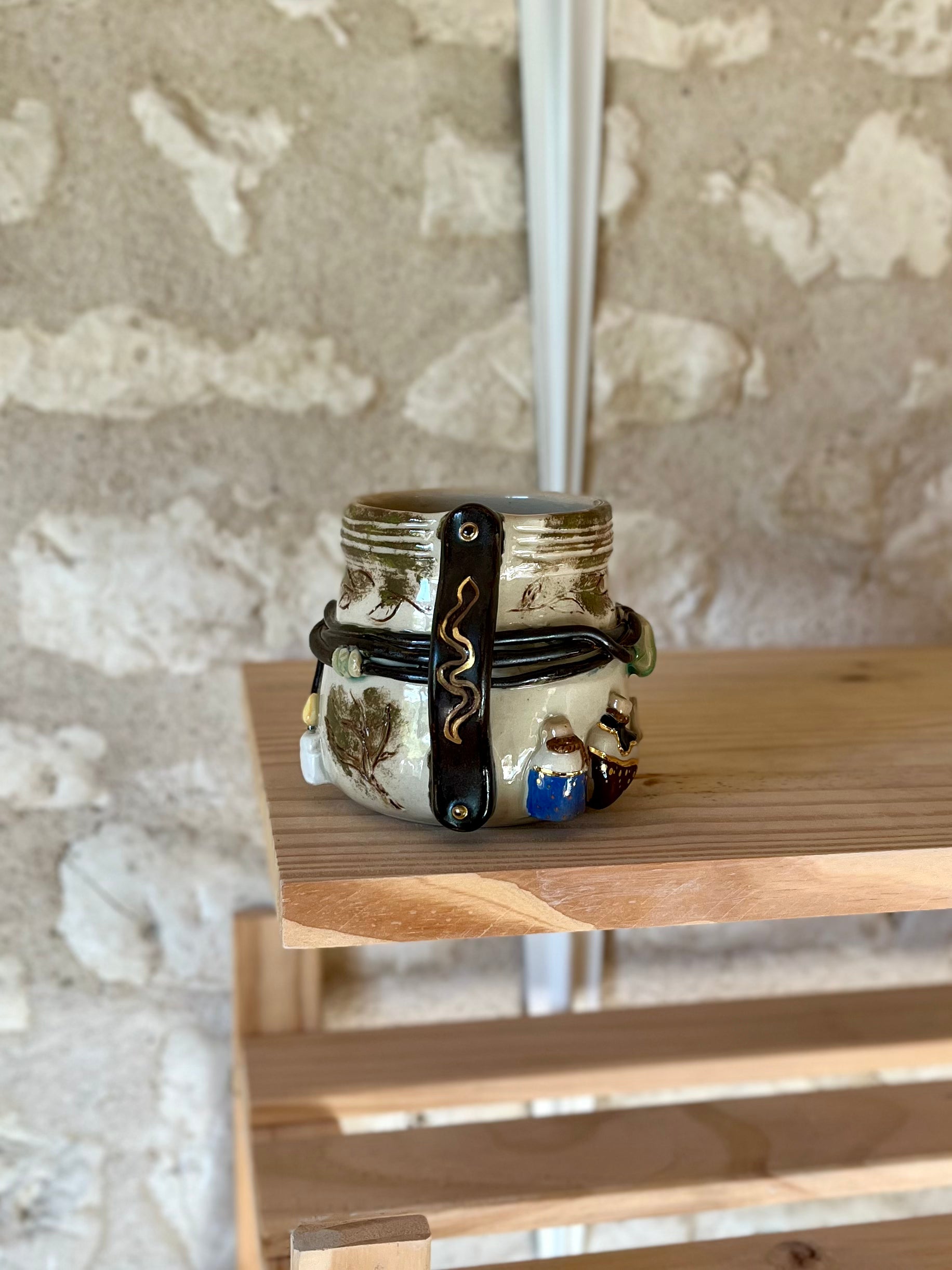 Pièce Claytober 2025 réalisé au tour de potier puis modelé, engobé et émaillé à la main.