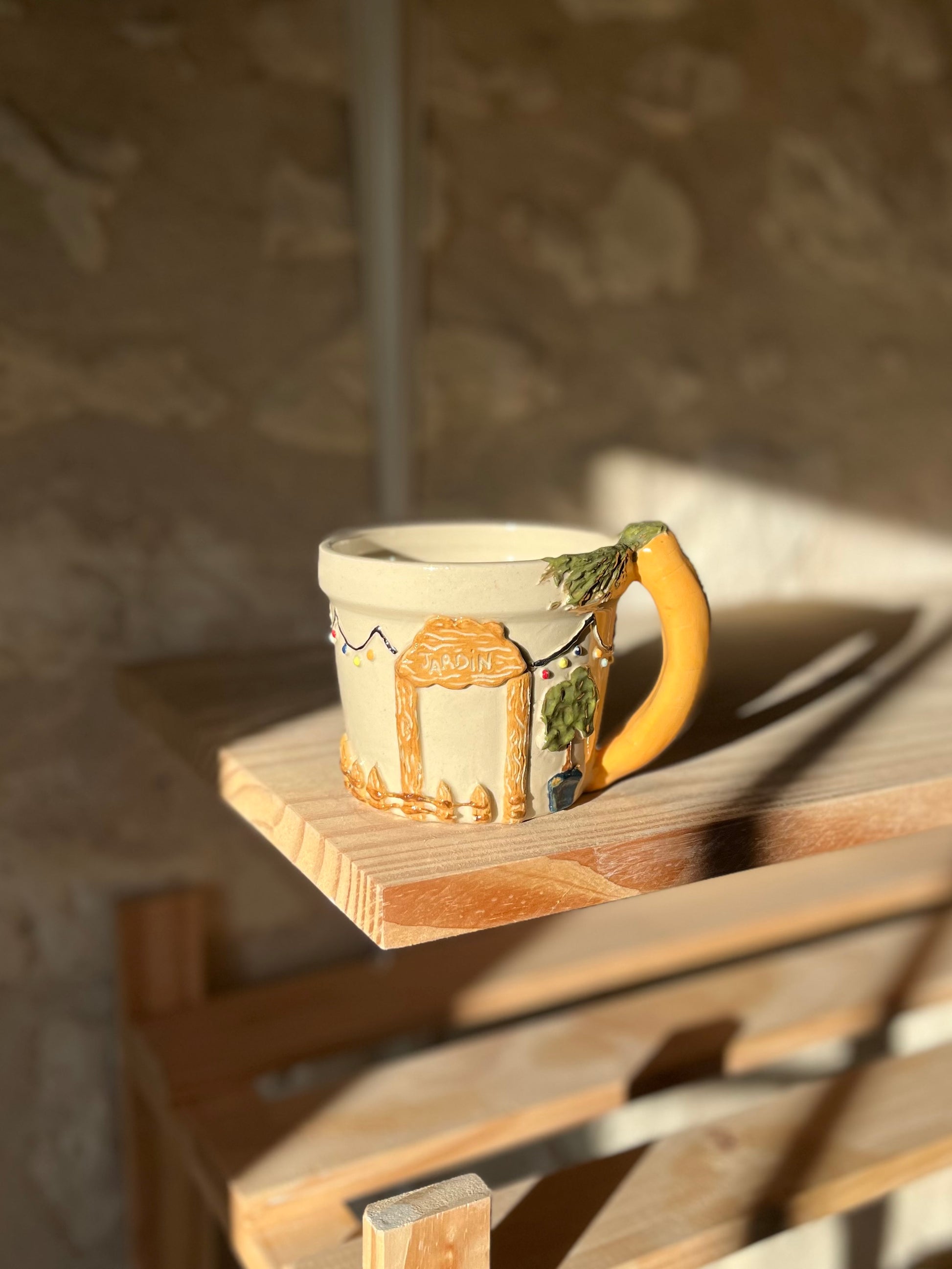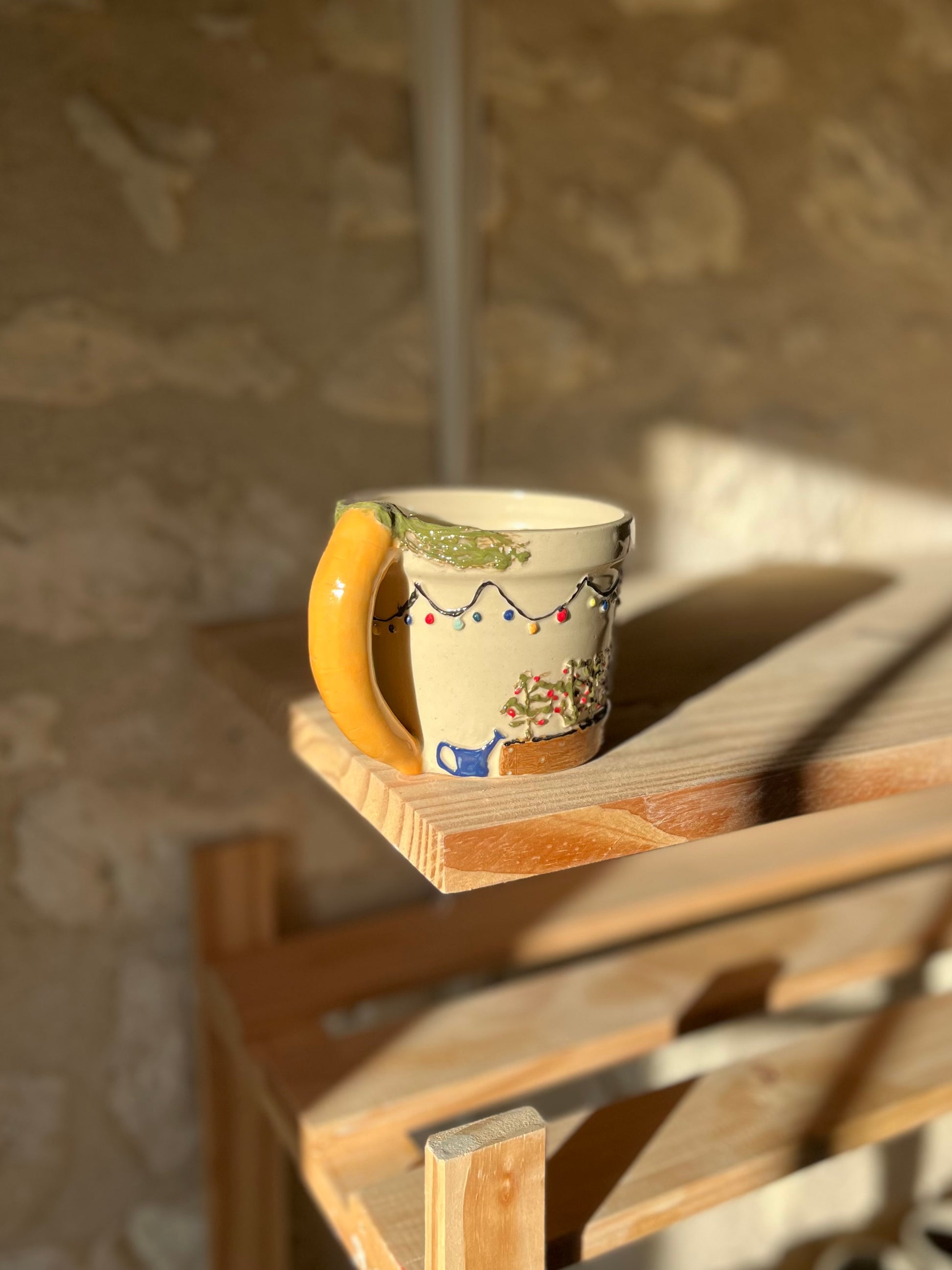 Pièce Claytober 2025 réalisé au tour de potier puis modelé, engobé et émaillé à la main.