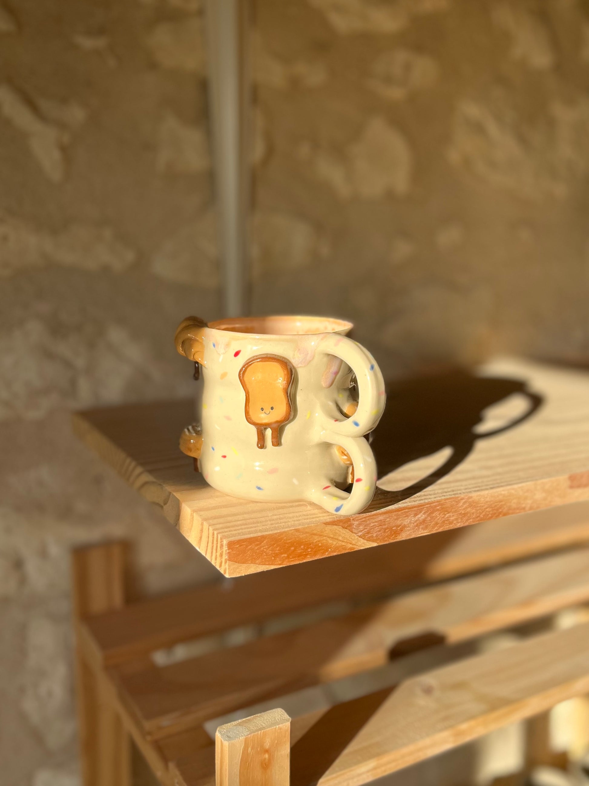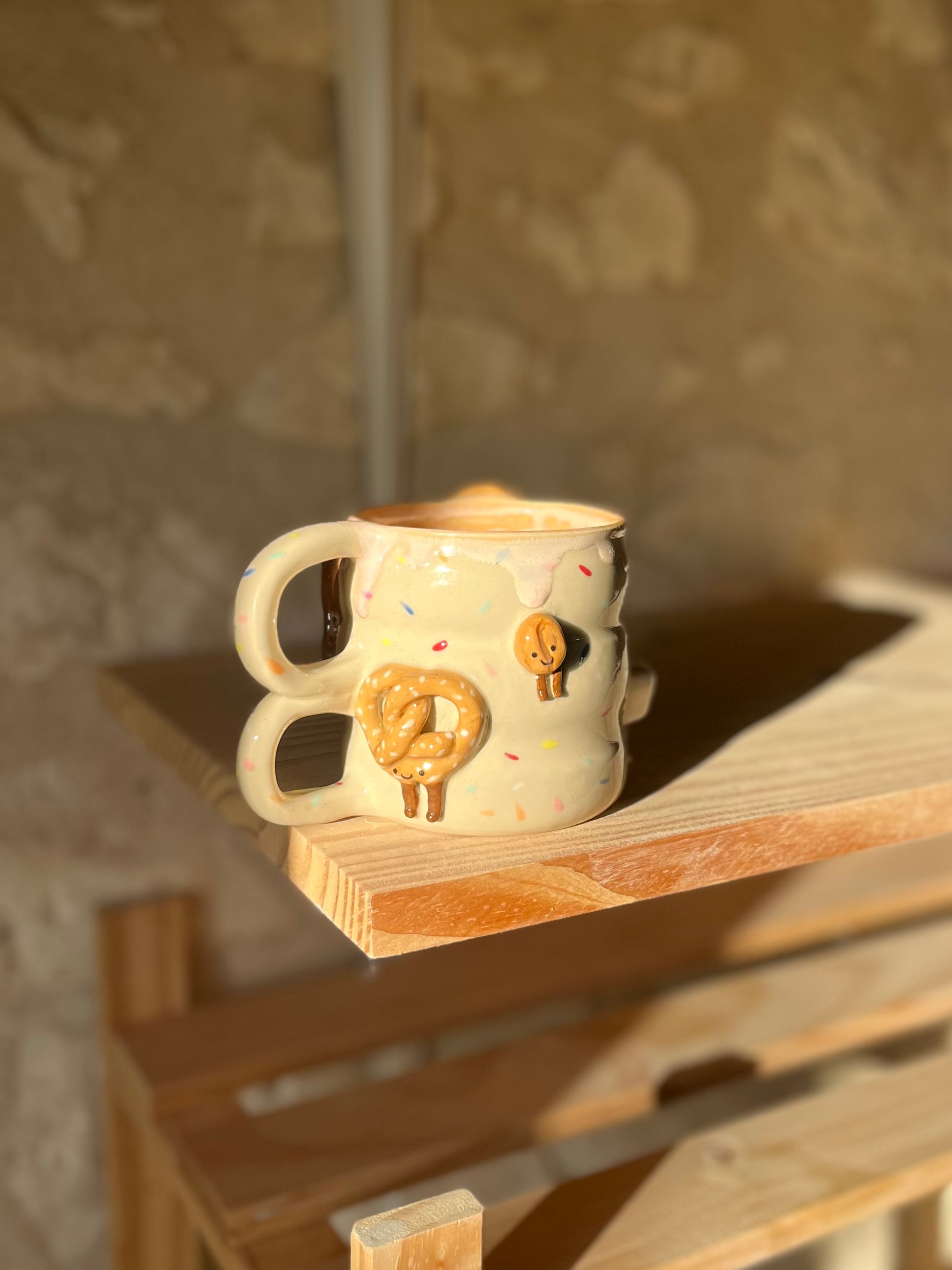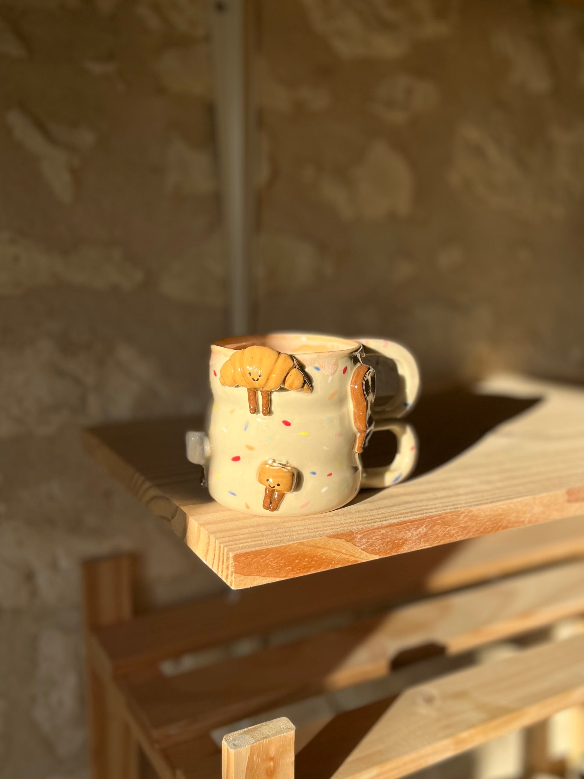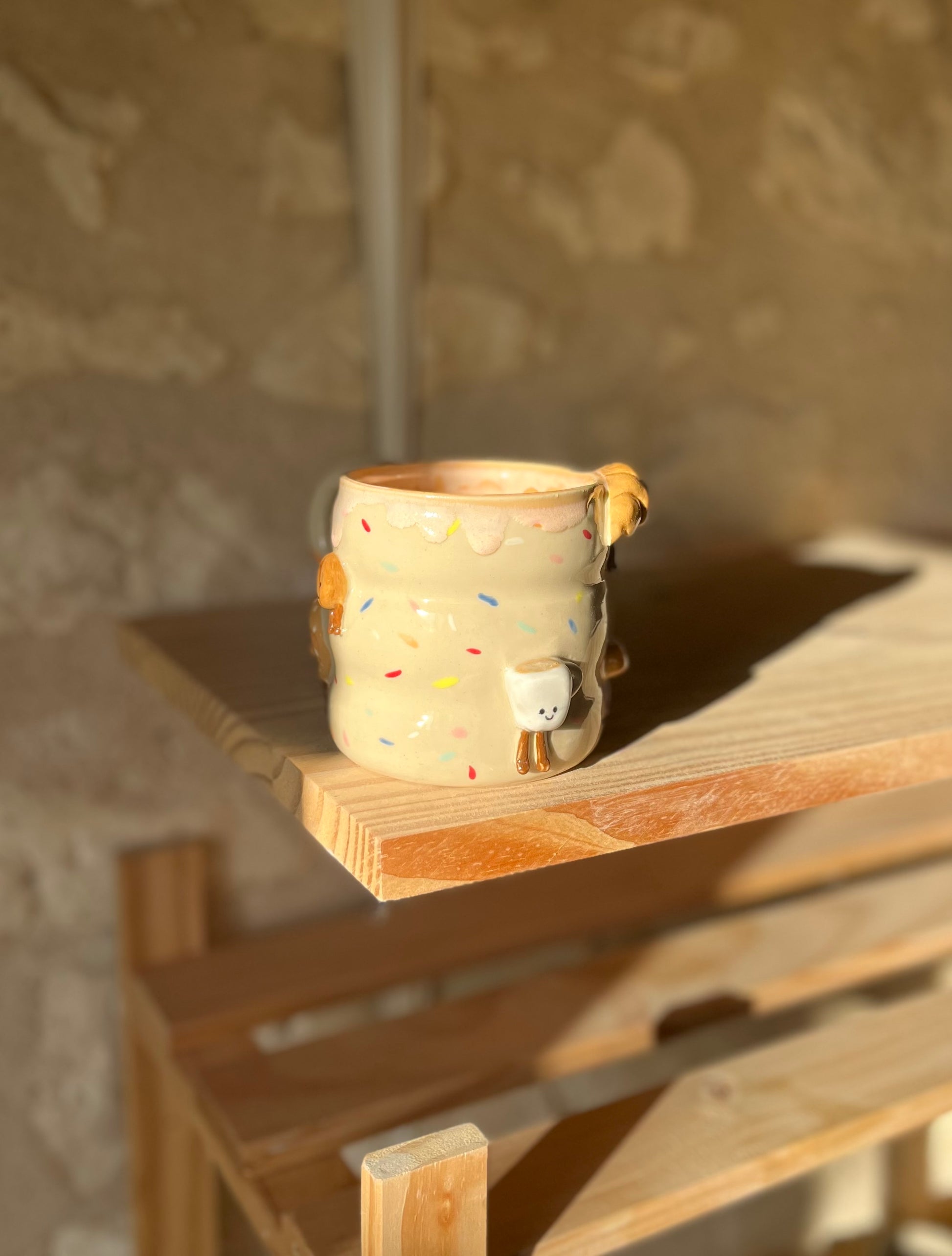 Pièce Claytober 2025 réalisé au tour de potier puis modelé, engobé et émaillé à la main.