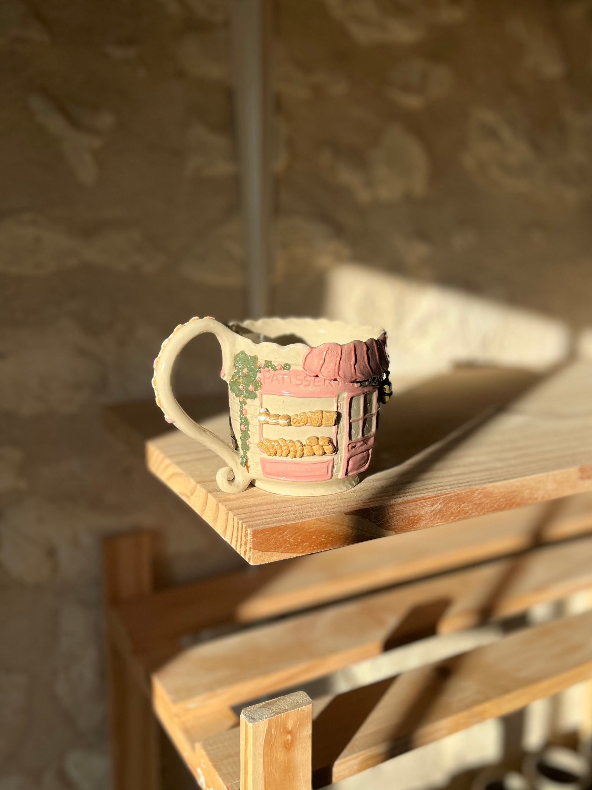 Pièce Claytober 2025 réalisé au tour de potier puis modelé, engobé et émaillé à la main.