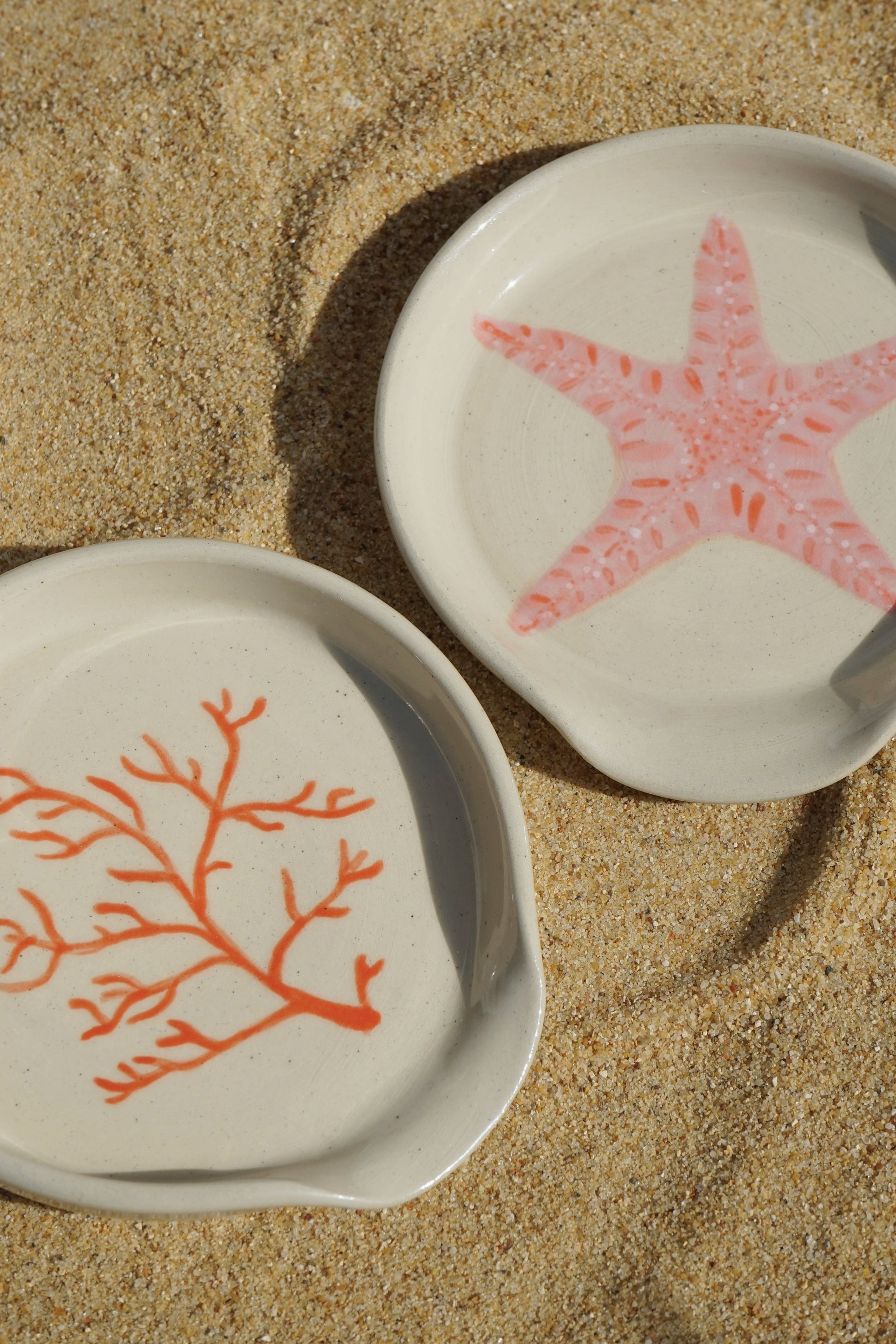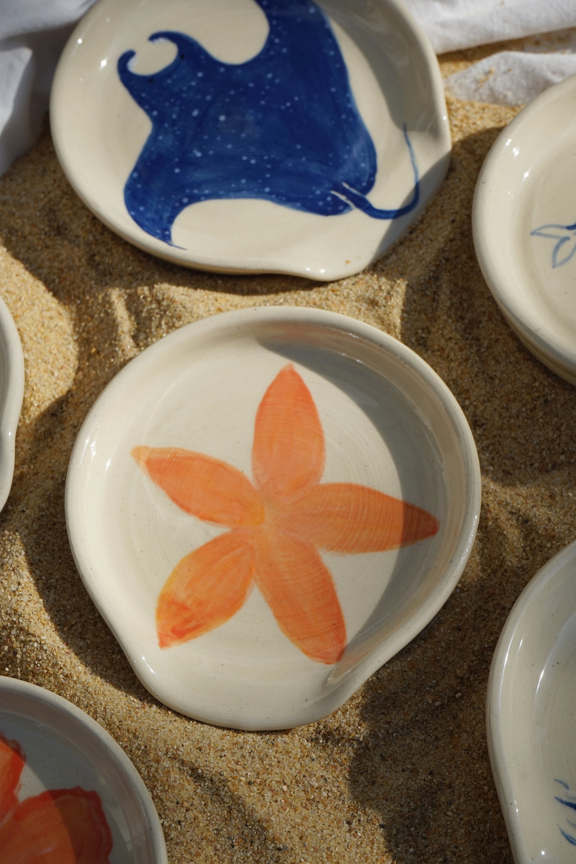 Repose cuillère en grès blanc tournée et décorée à la main avec des motifs terre et mer. Idéale pour présenter accompagner la préparation de vos repas ou comme pièce décorative. Chaque repose cuillère est unique et fabriqué artisanalement, avec de légères variations qui rendent chaque pièce spéciale.