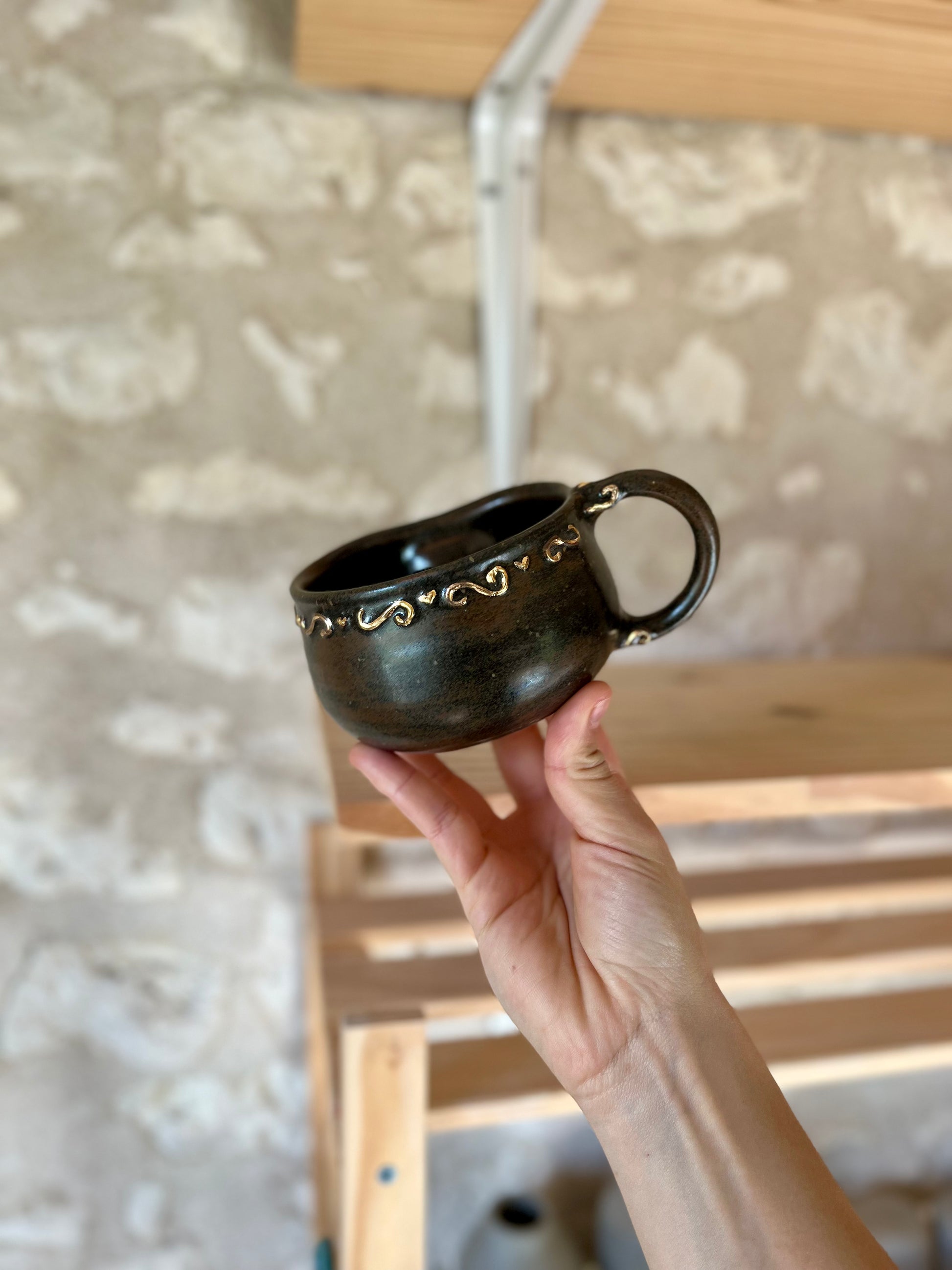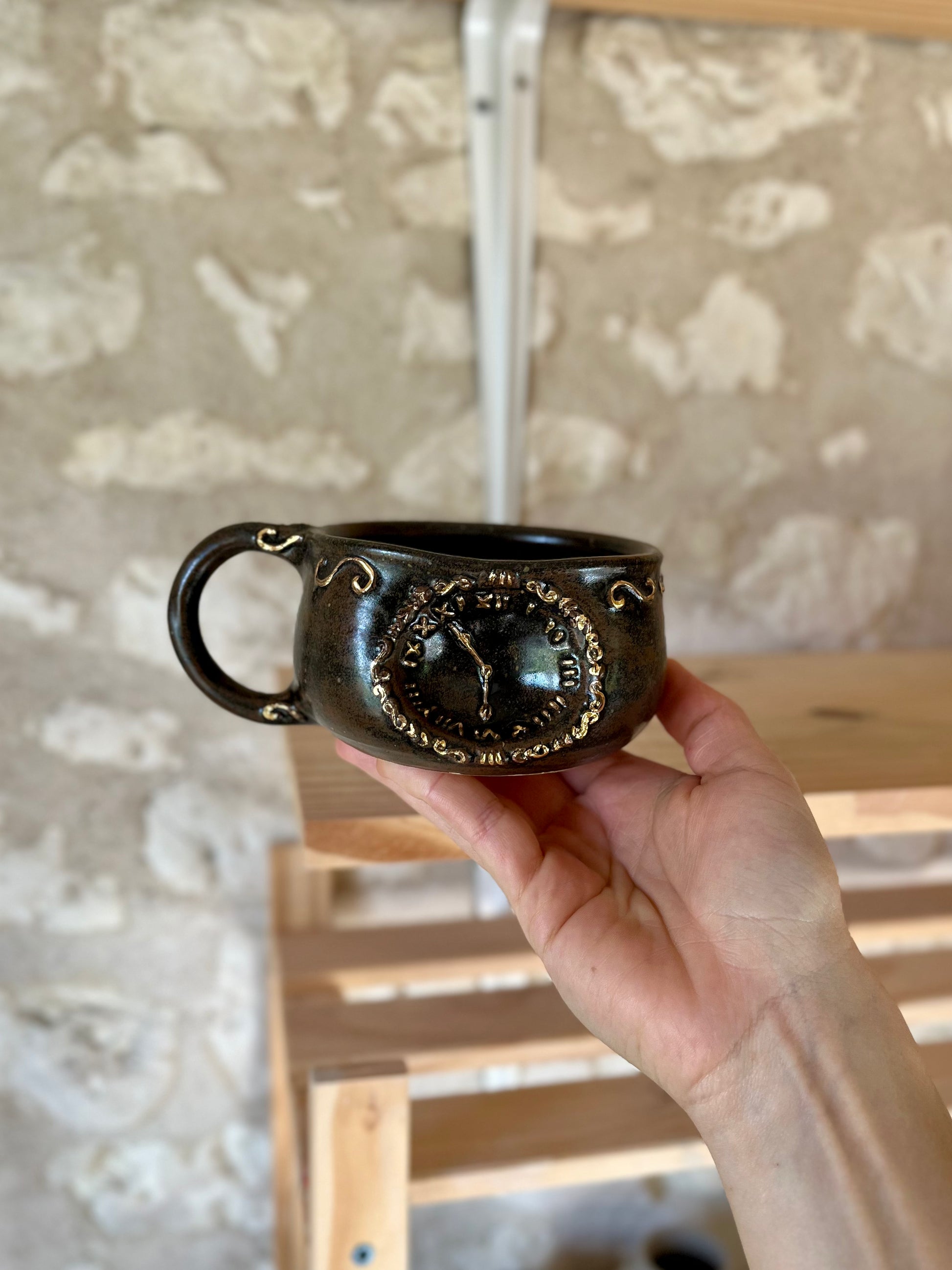 Pièce Claytober 2025 réalisé au tour de potier puis modelé, engobé et émaillé à la main.