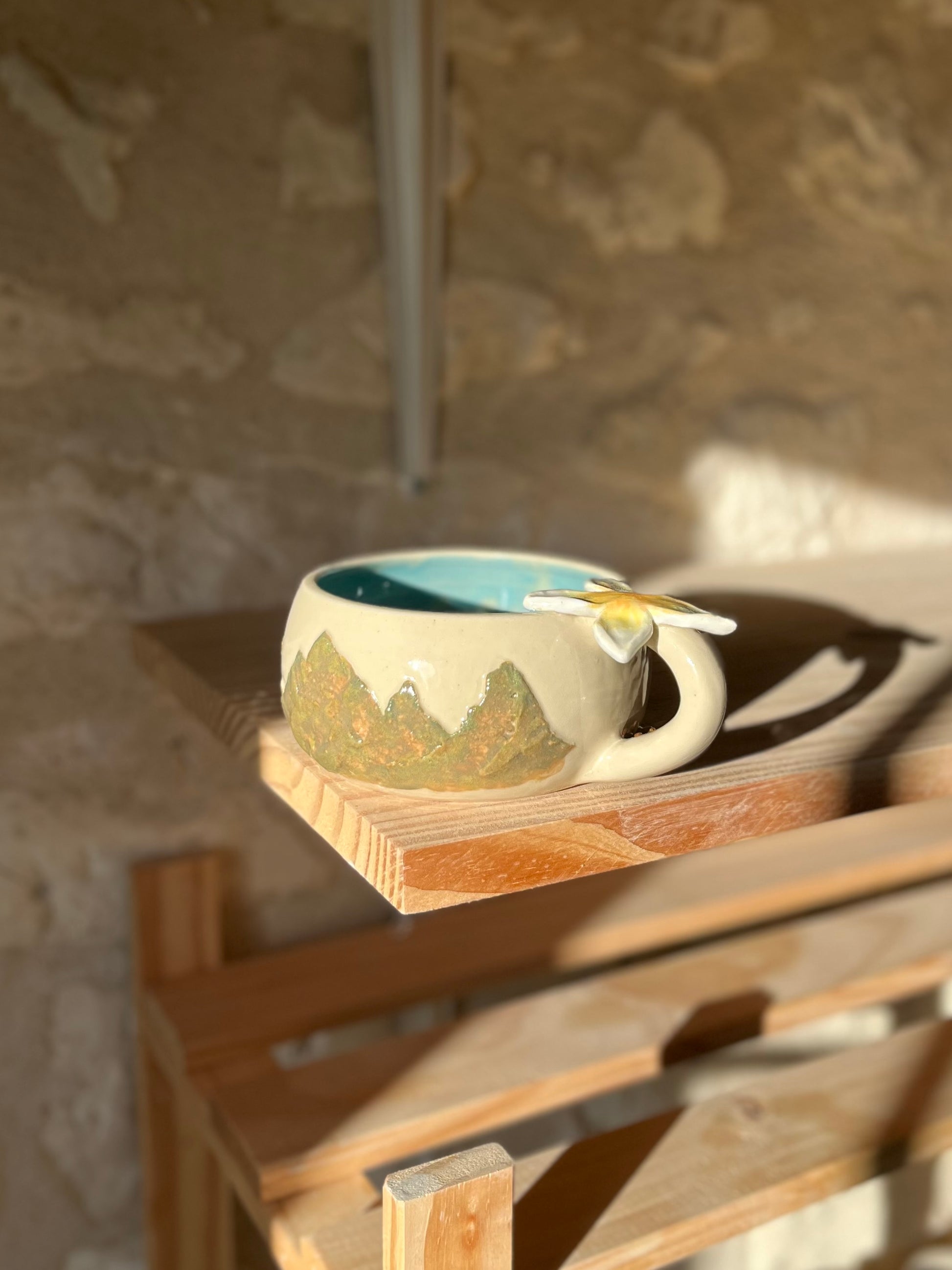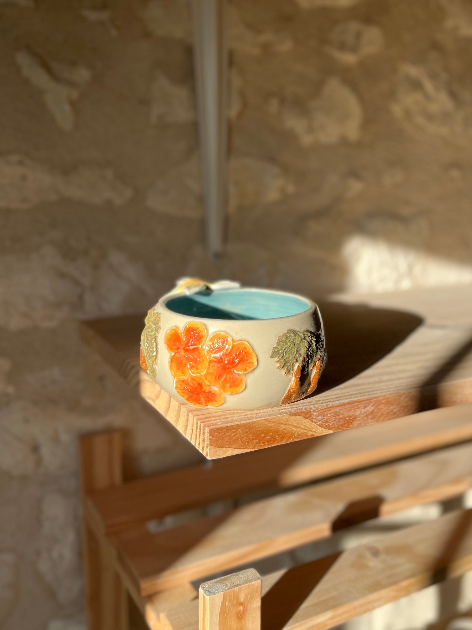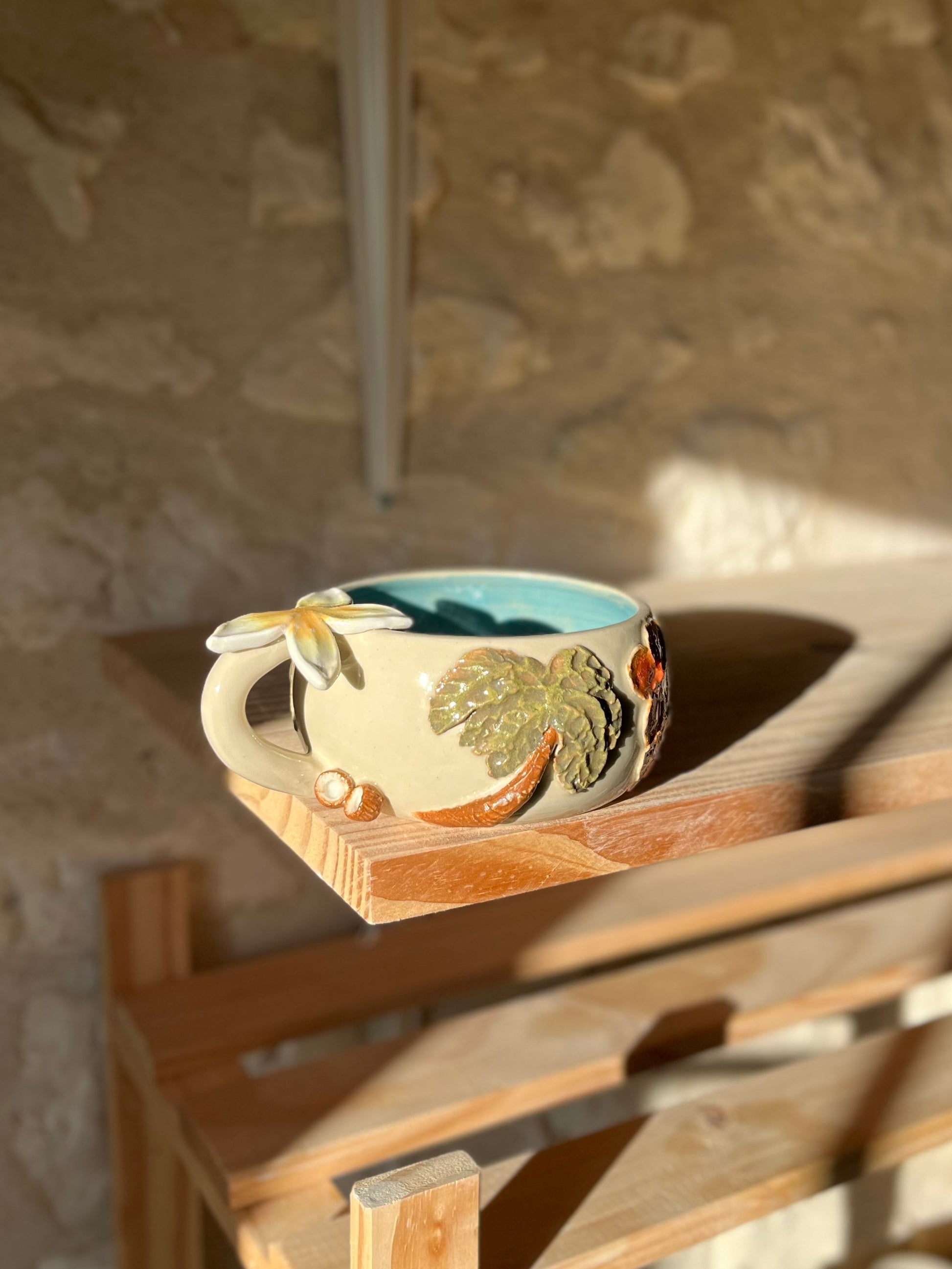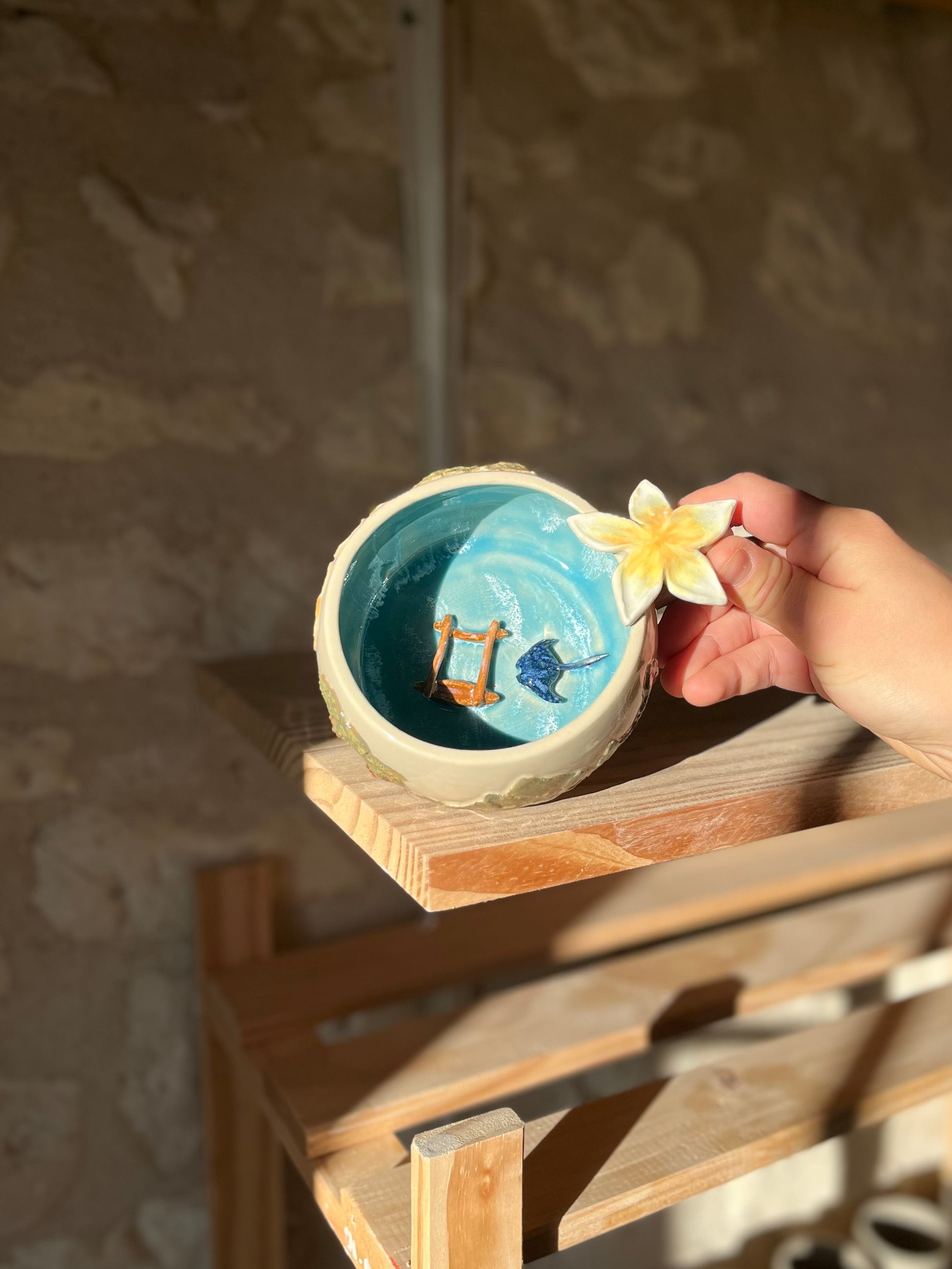 Pièce Claytober 2025 réalisé au tour de potier puis modelé, engobé et émaillé à la main.